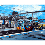 Christopher Hummel, 2025, Sydney Trains C set with graffiti arriving at St Peters station bound for Macarthur via East Hills during afternoon rush hour, Acrylic on canvas, 61cm × 77cm.